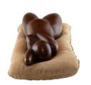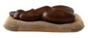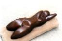 Man Ray, een Amerikaanse kunstenaar die in de leer was geweest bij Marcel Duchamps en met hem Dada oprichtte, experimenteerde met tekenen, schilderen en fotograferen. Hij mengde ze tot een eigen vorm, de aërographie. Zo maakte hij het tweedimensionale werk Hermaphrodite, genoemd naar het mythologische godenkind uit de Oudheid dat man noch vrouw was. Of allebei, zou je ook kunnen zeggen.En daarna maakte hij er een driedimensionaal beeld van. Een moderne Parijs kunstcentrum mocht van hem een paar versies maken, waarvan museum Beelden aan Zee de versie van gepatineerd brons op een lichtbruin suède kussen heeft. Het koele, spiegelgladde beeld, met sterke rondingen, verkorte ledematen en één borst, rust op het zachte suède. Het kan omgedraaid worden en dan zie je stevige billen, een gewelfde rug en een hoofd rustend op de gebogen arm. Aan de voorzijde komen de fraaie dijen samen onder de buik, waarmee ze een geslachtloze V vormen. Een koel, glad, sterk en sekse-loos beeld dat tóch verleidelijk is.