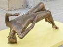 Deze figuur staat achterover in een boog, aapjes bevolken de buik. De bevreemdende, onaardse manier van vormgeven is typische voor Henk Visch. Hij maakt vaak van dit soort eigenaardige figuren. De houding lijkt krampachtig en bizonder gespannen. Het is eerder alsof de kunstenaar een sfeer oproept dan dat hij bijvoorbeeld een psygiatrisch ziekteverschijnsel toont. De kleine aapjes lijken een symbolische functie te hebben, maar welke? De figuur lijkt een brug te zijn voor de kleine figuren die erover lopen. Dat thema van de brug komt bij Henk Visch wel vaker voor. Hij heeft gezegd: Al mijn werk gaat over afstand, het gaan van hier naar daar, en om afstanden te overbruggen heb je metaforen nodig.