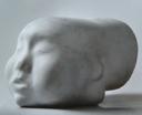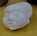 Dit kleine marmeren kopje vertoont door de gelaatstrekken en haardracht overeenkomsten met de mollige gevormde vrouwenfiguurtjes van beschilderd aardewerk die in China tussen de Han- en Tang dynastie als graf-gift aan hooggeplaatste personen werden meegegeven. De haardracht uit die tijd vormde een taal op zich zelf. Het simpelste was het haar gedraaid in een lange knot aan het begin van de nek. Proper noemde het beeldje ‘Unvollendet’ omdat ze de contouren zo vaag gehouden had.